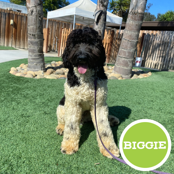 Born 12/27/21 This handsome standard sized boy is simply so wonderful. Gorgeous Black/White Parti boy!! He has a wavy-fleece, low-shedding coats. Biggie is so sweet, so kind, and very intuitive. Quiet and shy away at first meeting, but he immediately warms up and LOVES the LOVE. Once he knows you, he adores you, he gets along with everyone and loves the fun too! Biggis is athletic, kind, adorable and affectionate. Momma, Riley, and poppa, Bernard have lines that go deep within our history at APBC. Biggie’s brother was part of my elite Doodle Ambassador trained dogs program. He came to me from the breeding program of Loveable Labradoodles, He is neutered, microchipped and current on all vaccinations. You can see him on FB and Instagram stories at Aly’s Puppy Boot Camp,