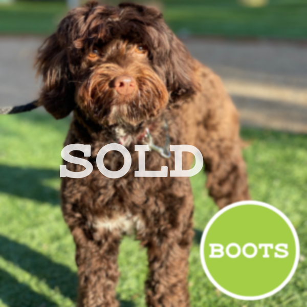 Boots the MINI Australian Labradoodle: Born 11/12/18 This gorgeous girl has a sumptuous chocolate-colored coat. She is approx. 14 lbs. She has a chenille, soft, wavy fleece, non-shedding coat. She is kind, friendly, bouncy, happy, sweet, interested in the world around her and is good around kids, and people of all ages. She is very loving and gets along well with other dogs. She is able to go as long as you want to go, but loves the love too! Boots retired from her breeding career from one of the best breeder’s in the country, Hales Labradoodles with lines that go back generations of dogs that I have trained, owned and had in my elite DOODLE AMBASSADOR program. She is spayed, microchipped and current on all vaccinations.
