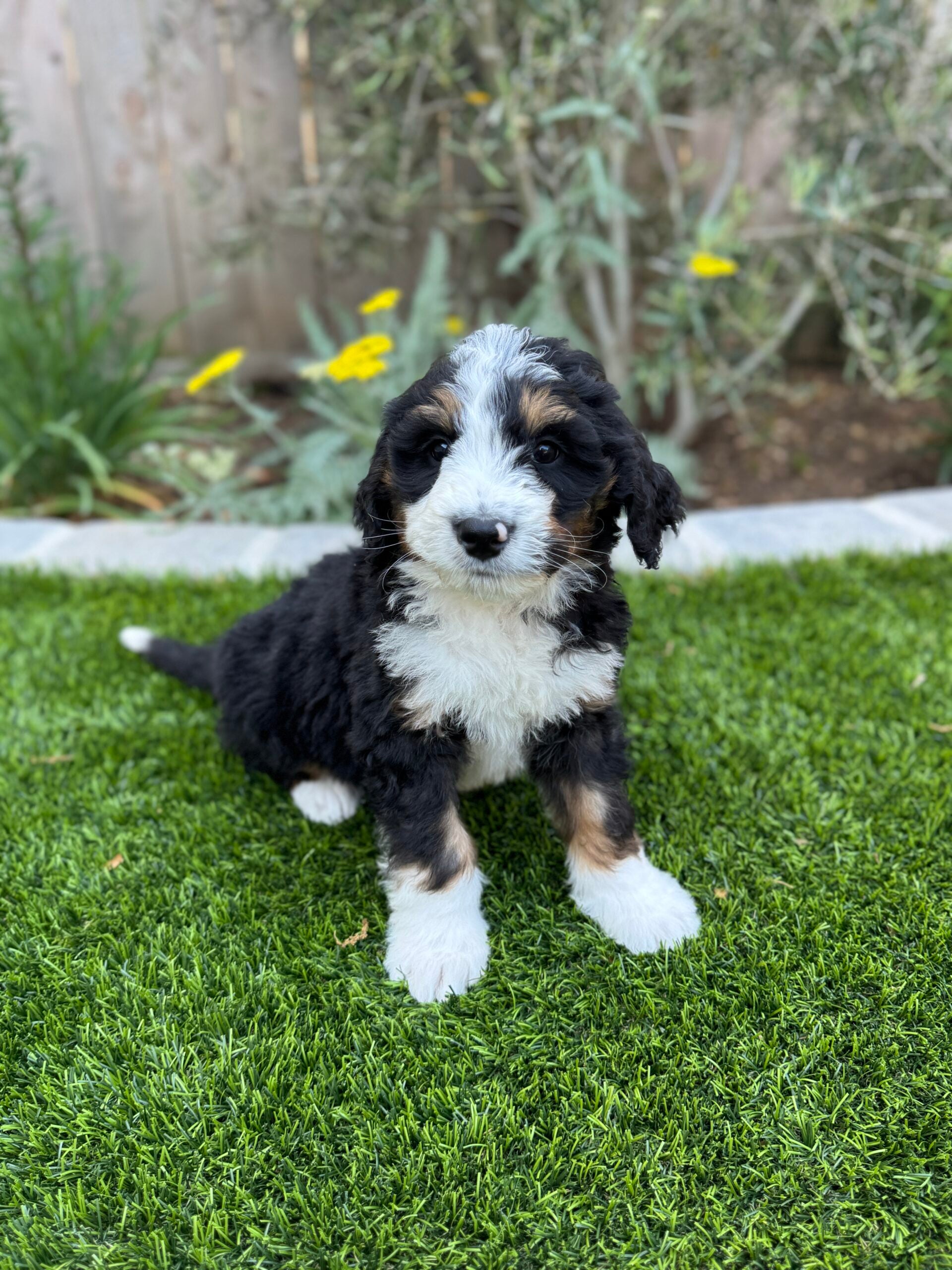 Say hello to Cowboy, our handsome tri-colored F1 Bernedoodle with a chenille-soft, low-shedding fleece coat and that classic sturdy, balanced Bernedoodle build we all swoon over. He’s expected to weigh between 50–65 lbs full grown—and every pound will be packed with gentle love and loyal companionship.