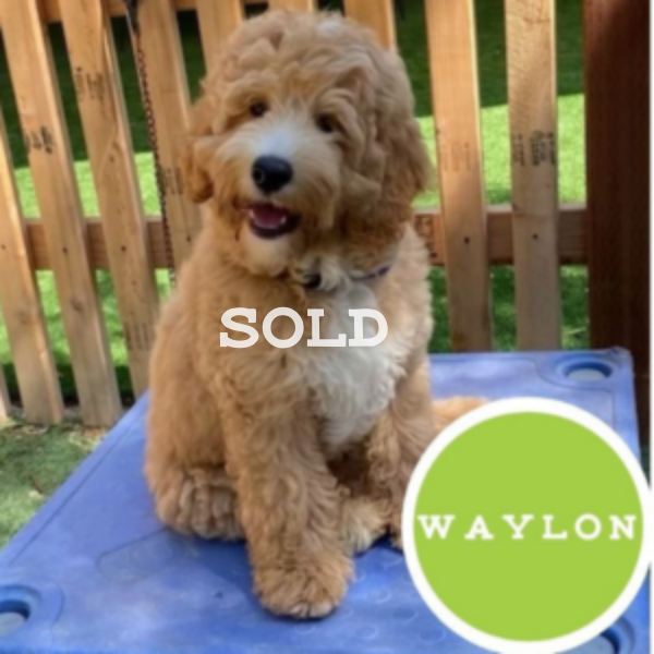 Waylon the Australian Labradoodle: Born 5/19/21 This handsome boy is simply stunning! His caramel colored, wavy-fleece, non-shedding coat is to die for! Waylon is a sensitive boy that adores people….once he knows you. He would love to live in a quieter, more mature home where he could be the apple of your eye! He came to me from the breeding program of Moo Cow Labradoodles, He will be neutered before he leaves, microchipped and current on all vaccinations. You can see him on FB and Instagram at Aly’s Puppy Boot Camp, and you can search specifically for him by typing, #apbcwaylon in the search bar. (microchip 933000320536230)